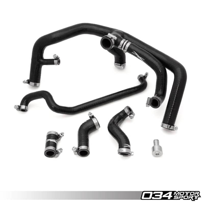 034Motorsport is proud to offer our Silicone Breather Hose Kit for the B5 Audi S4 and C5 Audi A6 2.7T! Designed to replace the problematic factory "spider" breather hose assembly, this kit is manufactured from high-quality automotive silicone and features a modular design that is compatible with all factory breather configurations and can easily be used with an aftermarket oil catch can. This kit includes our 034Motorsport Billet PCV Check Valve, as well as all hose clamps needed for installation.