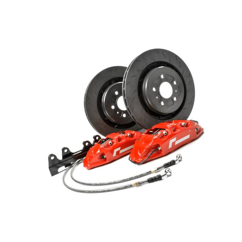 Kit large front brake 4 VWR pistons Racingline red or black for MQB VAG platform.