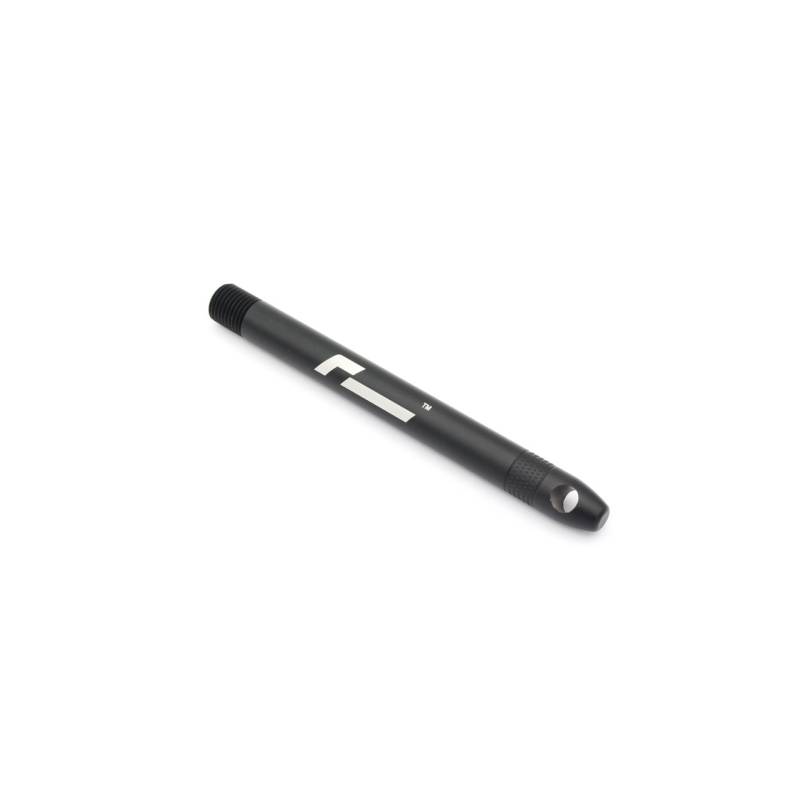 The VWR630100 is athreaded rod made of 7075-T6 aluminum, black anodized, which screws into one of the wheel hub holes. It allows you to place the wheel on the stem, supporting its weight and aligning the bolt holes, without having to hold it with one hand while searching for the first bolt. Once the other four bolts are in place, simply remove the rod and insert the final bolt.