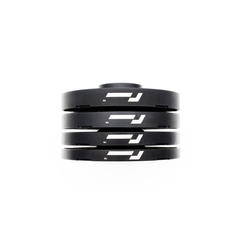RacingLine rim widening shims are made from 7075 T6 aerospace aluminum, heat treated to increase strength and durability, compared to cheaper 6000 alloy shims. They are also covered with black anodizing, to protect the aluminum from dirt and corrosion. They are optimized in weight, while maintaining maximum resistance. They are easy to remove, even after thousands of kilometers, thanks to the cutouts on the back.